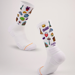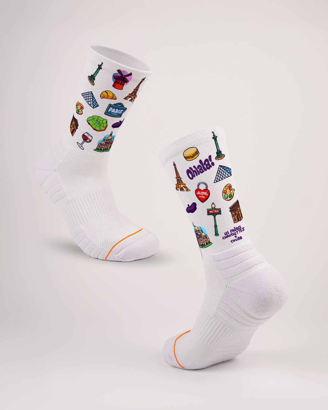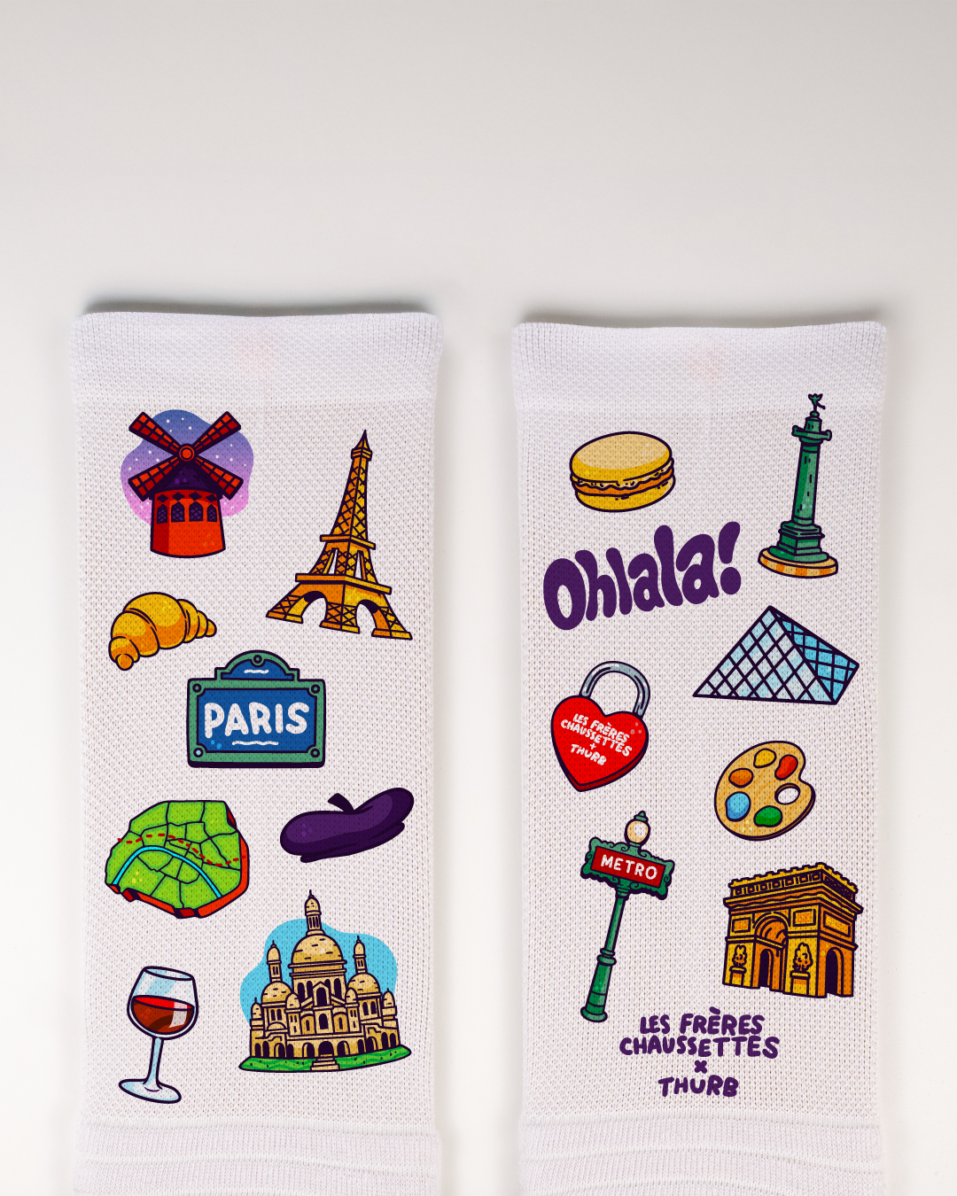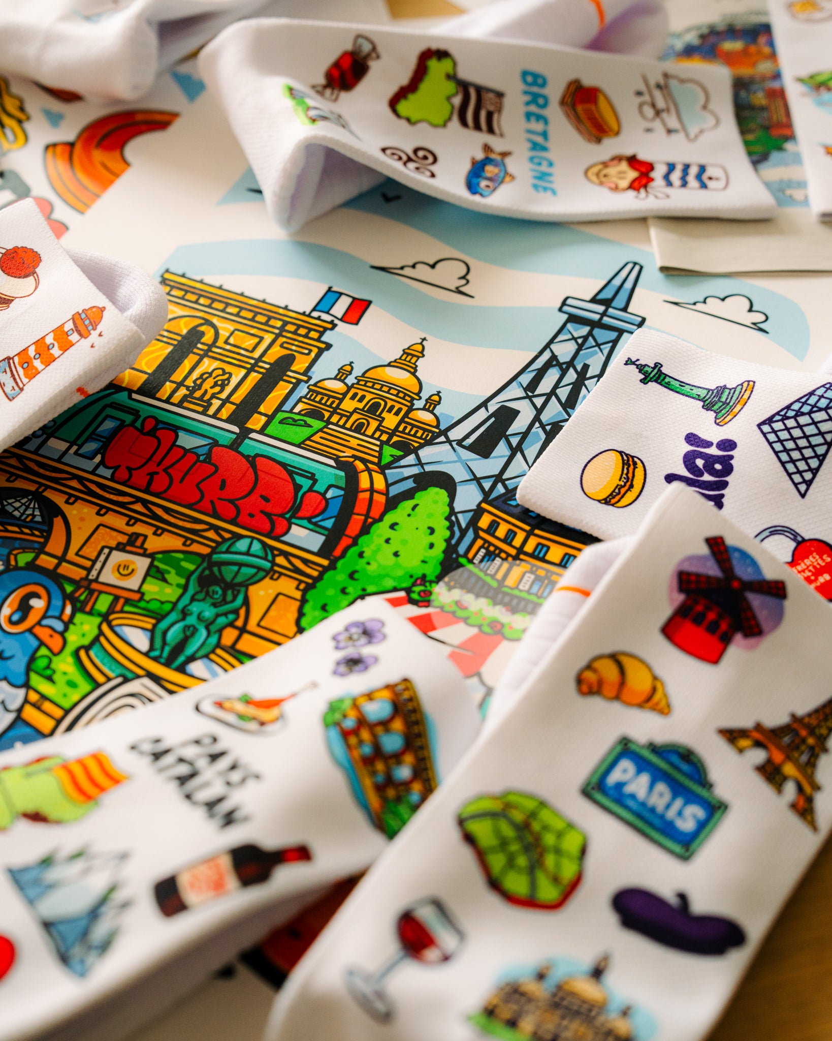 Créées avec l’artiste caennais Thurb, ces chaussettes transmettent une culture grâce à son art, pour un look unique directement inspiré de ta région.